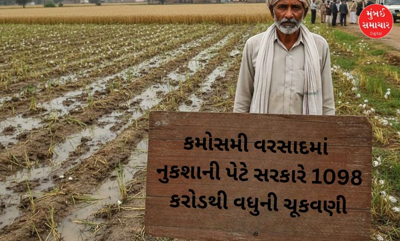ગુજરાતમાં કમોસમી વરસાદમાં પાક નુકશાની પેટે સરકારે 1098 કરોડથી વધુની ચૂકવણી કરી